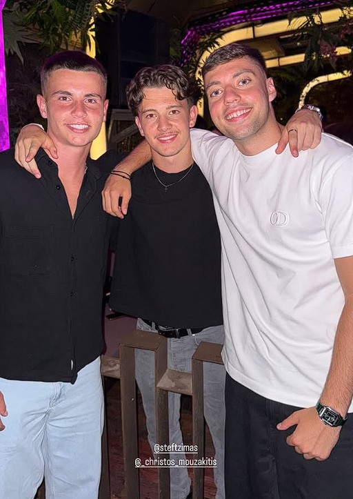 Δύο από αυτούς είναι ο Στέφανος Τζίμας και ο Κωνσταντίνος Καρέτσας, που διανύουν επίσης τις καλοκαιρινές τους διακοπές στην Ελλάδα και βρήκαν την ευκαιρία να συναντηθούν με τον νεαρό μέσο των Ερυθρολεύκων. Τη φωτογραφία από τη νυχτερινή τους έξοδο ανέβασε σε story στο Instagram ο παίκτης της Γκενκ.