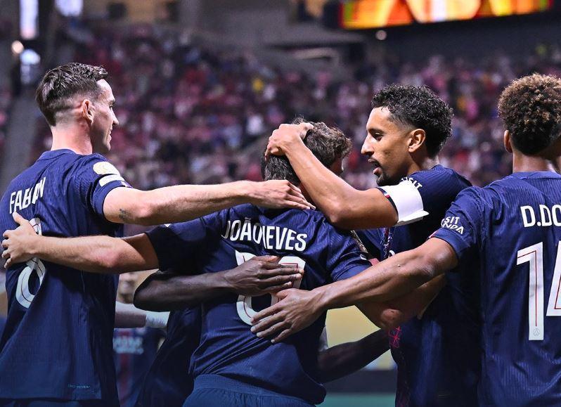 Μόλις στο 6ο λεπτό άνοιξε το σκορ με κεφαλιά μετά από την εκπληκτική εκτέλεση φάουλ του Βιτίνια από τα αριστερά.
