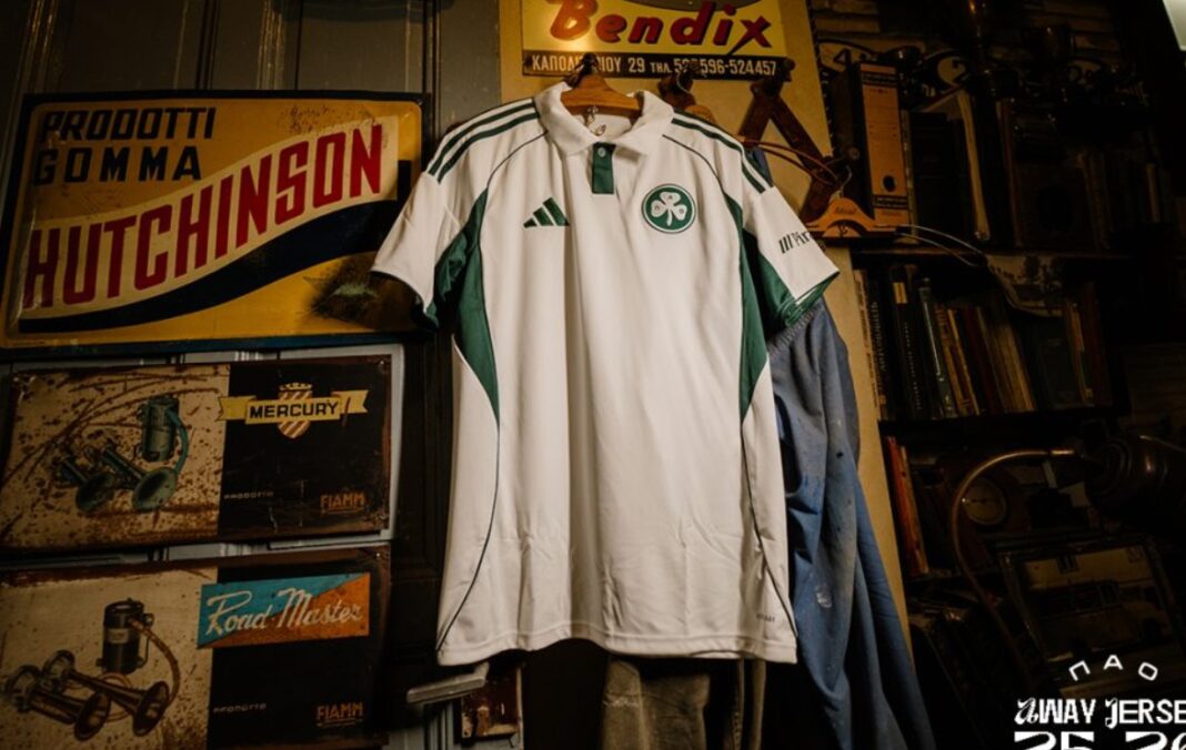 Οι Πράσινοι αποκάλυψαν τη… ρετρό εκτός έδρας εμφάνιση τους, με ένα ωραίο βίντεο στους λογαριασμούς της ομάδας. Η νέα φανέλα είναι λευκή με γιακά, ενώ οι λεπτομέρειες στο μανίκι καθώς και το σήμα της ομάδας, είναι με πράσινο.