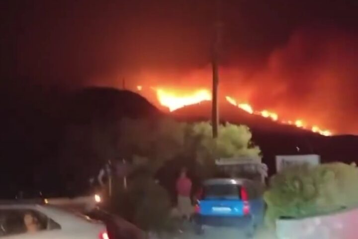 Σύμφωνα με την πυροσβεστική, η μεγάλη πυρκαγιά που κινείται ανάλογα με τη φορά των θυελλωδών ανέμων που πνέουν στην περιοχή, έχει «σπάσει» σε τρία μέτωπα, με επίκεντρο τα Φέρμα, τα Αχλιά και τα Σχοινοκάψαλα.