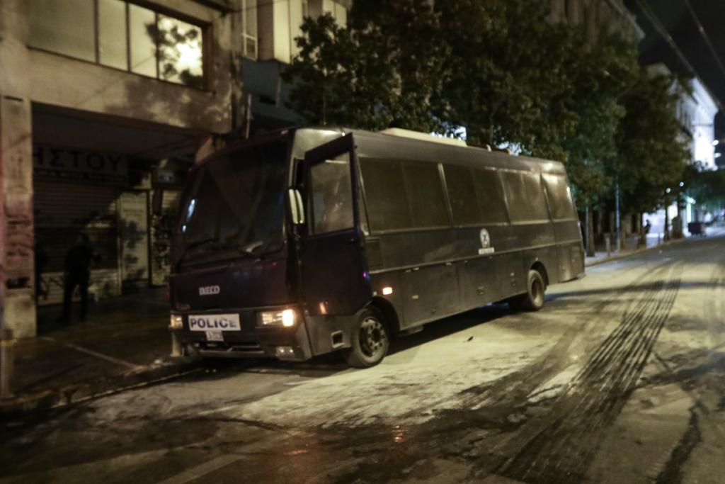 Στη συνέχεια έκαναν επίθεση με βόμβες μολότοφ και διάφορα άλλα αντικείμενα στο αστυνομικό τμήμα της Ομόνοιας. Αμέσως μετά οι δράστες εξαφανίστηκαν.