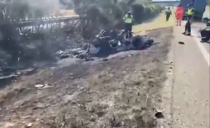 Βίντεο που ανάρτησε η τουρκική Hurriyet από τον τόπο του δυστυχήματος σε αυτοκινητόδρομο της επαρχίας Θαμόρα δείχνει το καμένο κουφάρι της Lamborghini του 28χρονου Πορτογάλου, δίπλα στα πυροσβεστικά οχήματα που κλήθηκαν να σβήσουν τη φωτιά.