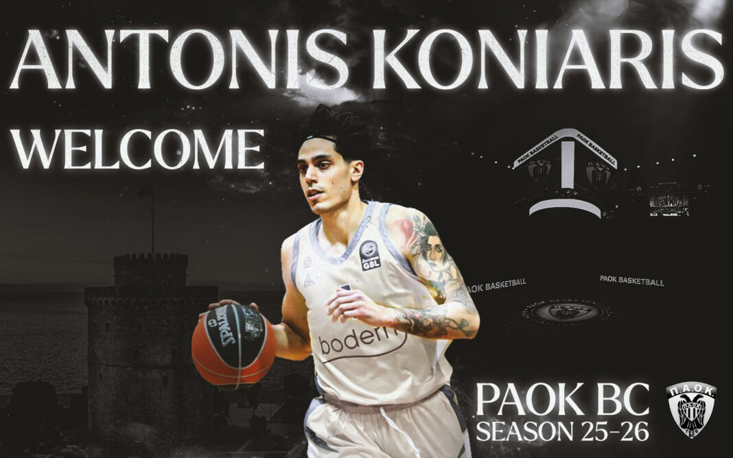 «Η ΚΑΕ ΠΑΟΚ mateco ανακοινώνει τη συμφωνία με τον Αντώνη Κόνιαρη, ο οποίος επιστρέφει στην ομάδα μας για να αγωνιστεί και πάλι με την ασπρόμαυρη φανέλα τη σεζόν 2025-26.