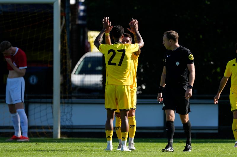 Η Κόρτραϊκ, που αγωνίζεται φέτος στη Β’ Βελγίου, εκμεταλλεύτηκε αδράνεια στην άμυνα της ΑΕΚ και άνοιξε το σκορ με κεφαλιά του Λάμπερτ, δίνοντας στην ολλανδική ομάδα ένα προβάδισμα που δικαιούταν από νωρίς. Η Ένωση χρειάστηκε χρόνο μέχρι να ανεβάσει ρυθμό, αλλά η καλύτερη ευκαιρία της στο πρώτο μέρος για ισοφάριση χάθηκε από τον Πιερό.