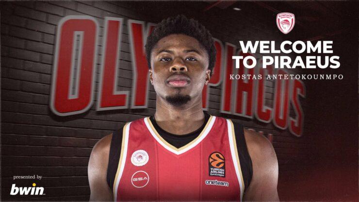 «Η ΚΑΕ Ολυμπιακός ανακοινώνει την απόκτηση του Κώστα Αντετοκούνμπο. Ο Έλληνας σέντερ υπέγραψε με την ομάδα μας συμβόλαιο διετούς διάρκειας.
