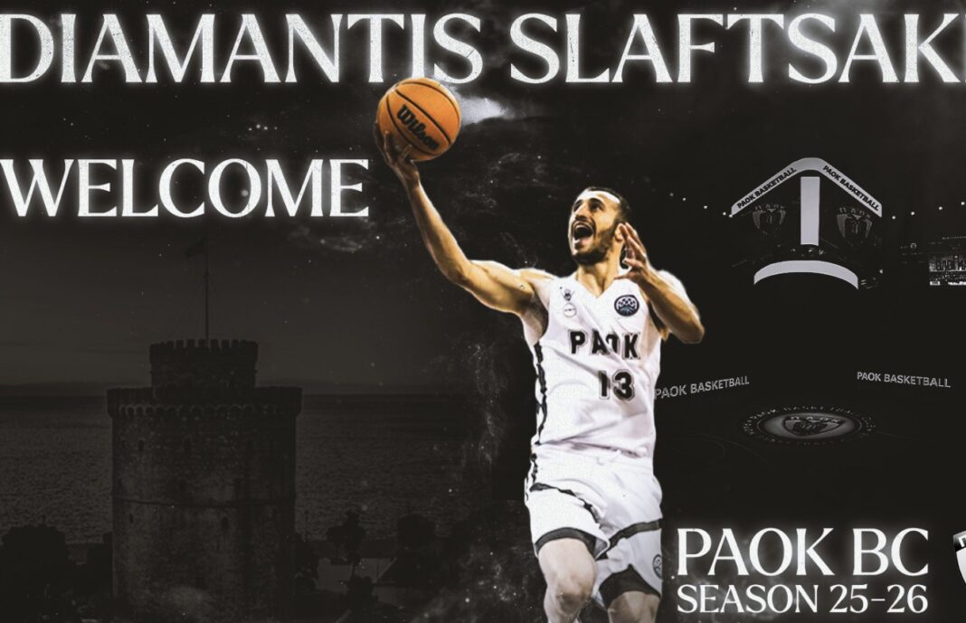Η ΚΑΕ ΠΑΟΚ mateco ανακοινώνει τη συμφωνία με τον Διαμαντή Σλαφτσάκη, ο οποίος επιστρέφει στην ομάδα μας, για να αγωνιστεί και πάλι με τα ασπρόμαυρα τη σεζόν 2025-26. Καλωσορίζουμε και πάλι το Διαμαντή Σλαφτσάκη στη μεγάλη οικογένεια του ΠΑΟΚ.