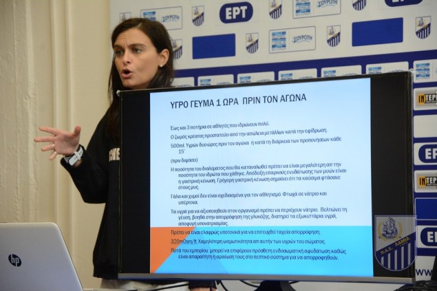 Μετά το πέρας της προπόνησης οι ποδοσφαιριστές ενημερώθηκαν, από την συνεργαζόμενη με την ΠΑΕ διατροφολόγο κ. Ζωή Γιαννακάκη, για τις σωστές διατροφικές συνήθειες πριν και μετά τις προπονήσεις και τους αγώνες για τη μέγιστη δυνατή απόδοση».