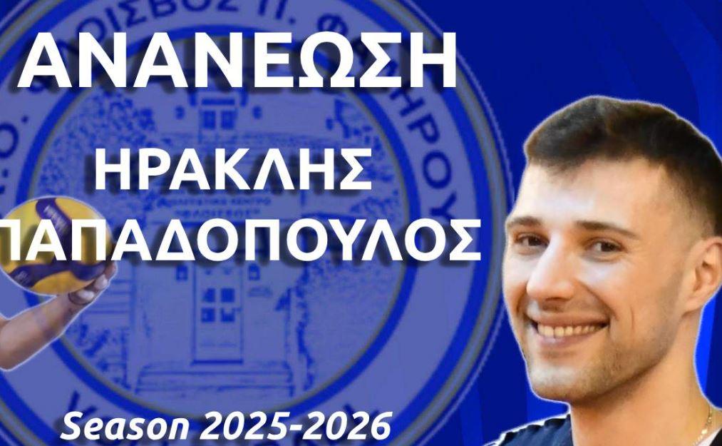 «Ο ΑΟ Φλοίσβος Παλαιού Φαλήρου είναι στην ευχάριστη θέση ν’ ανακοινώσει την ανανέωση συνεργασίας, για την αγωνιστική περίοδο του πρωταθλήματος της Volley League 2025-2026, με τον έμπειρο διαγώνιο Ηρακλή Παπαδόπουλο.