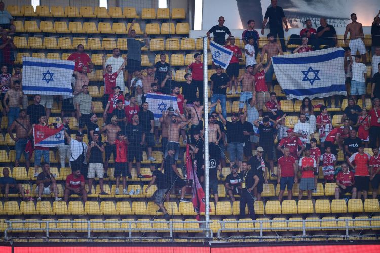 Στο γήπεδο φιλοξενούνται και οπαδοί της Χάποελ Μπερ Σεβά που έχουν σημαίες του Ισραήλ.