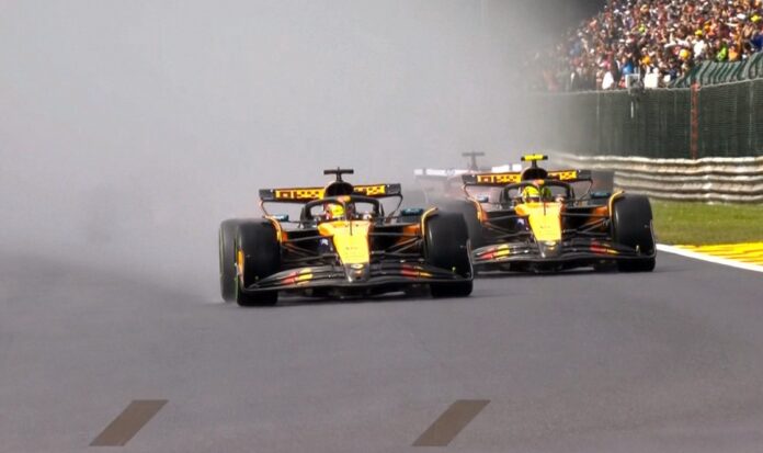 Πίσω του ο Λάντο Νόρις που έχασε νωρίς την πρώτη θέση, ακολούθησε διαφορετική στρατηγική μόλις στέγνωσε η πίστα βάζοντας τη σκληρή γόμα, όμως είδε τον teammate του να αντέχει με τη μέση και παρά το γεγονός πως στο τελευταίο κομμάτι ροκάνισε μέρος της διαφοράς, δεν κατάφερε κάτι παραπάνω.