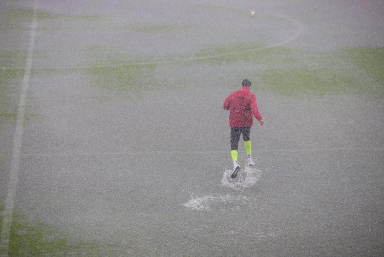 Το απόγευμα της Κυριακής (27/7) άνοιξαν οι ουρανοί και ο αγωνιστικός χώρος μετατράπηκε σε… πισίνα με αποτέλεσμα το ματς να αναβληθεί.