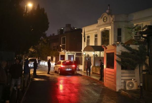 Η πολυμελής ομάδα της τουρκικής αστυνομίας και της εισαγγελίας αποχώρησε τις πρώτες πρωινές ώρες από το προξενείο της Σαουδικής Αραβίας στην Κωνσταντινούπολη, έπειτα από την χωρίς προηγούμενο έρευνα, διάρκειας οκτώ ωρών, μεσούσης της νύχτας. Τα μέλη της τουρκικής ομάδας, τα οποία συνόδευσε στην έρευνά τους μια σαουδαραβική αντιπροσωπεία, μπήκαν στα αυτοκίνητά τους και αποχώρησαν από το προξενείο, παίρνοντας μαζί τους διάφορα δείγματα, μεταξύ άλλων από τον κήπο του κτιρίου της σαουδαραβικής διπλωματικής αντιπροσωπείας, ανέφερε ένας αξιωματούχος έξω από το προξενείο.