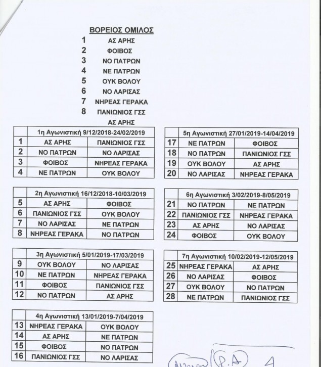 ΒΟΡΕΙΟΣ ΟΜΙΛΟΣ: Άρης Θεσσαλονίκης, ΠΑΣ Φοίβος, ΝΟ Πατρών, ΝΕ Πατρών, ΟΥΚ Βόλου, ΝΟ Λάρισας, Νηρέας Γέρακα, Πανιώνιος