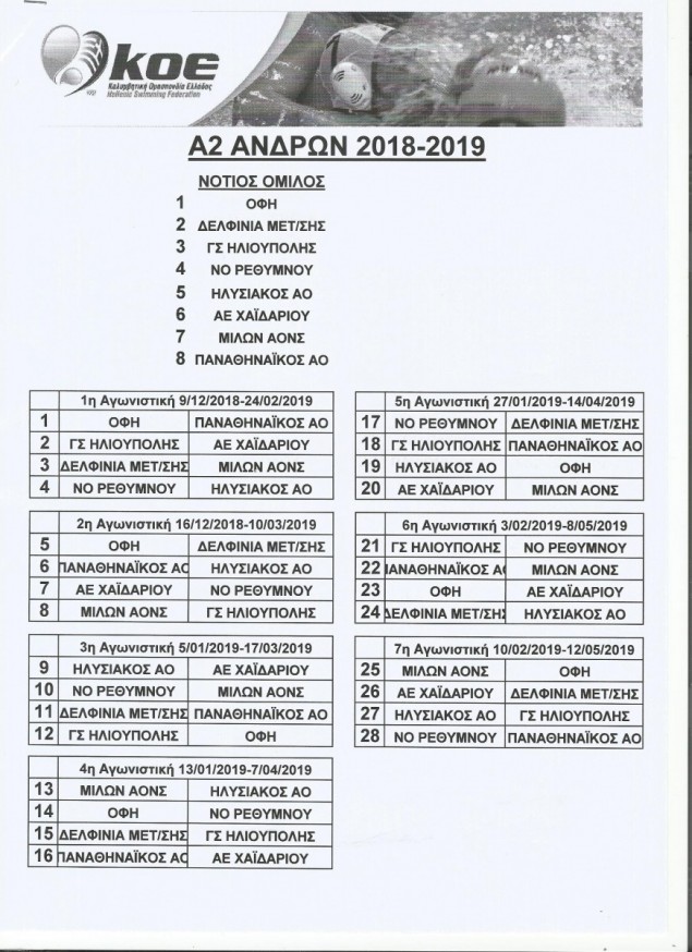 ΝΟΤΙΟΣ ΟΜΙΛΟΣ: ΟΦΗ, Δελφίνια Μεταμόρφωσης, ΓΣ Ηλιούπολης, ΝΟ Ρεθύμνου, Ηλυσιακός, ΑΕ Χαϊδαρίου, Μίλων, Παναθηναϊκός
