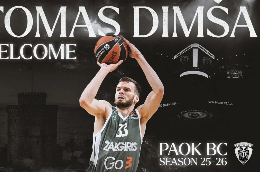 «Η ΚΑΕ ΠΑΟΚ mateco ανακοινώνει τη συμφωνία με το Λιθουανό καλαθοσφαιριστή Tomas Dimša για την αγωνιστική περίοδο 2025-26.
