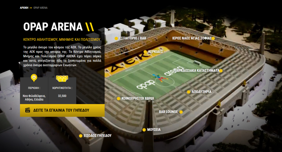 Το γήπεδο που αναφέρεται ως OPAP Arena από τότε που χτίστηκε, υποτίθεται ότι θα ονομαζόταν «Αγιά Σοφιά», με όλους τους συνειρμούς που θα κουβαλούσε η ονομασία. Η «Αγιά Σοφιά» όμως υποχώρησε όταν εμφανίστηκαν τα εκατομμύρια του επίσης ιδιωτικοποιημένου ΟΠΑΠ και κάπως έτσι φτάσαμε στην OPAP Arena. Όπως παρατηρήσατε και στην εικόνα, η μόνη αναφορά σε Αγία Σοφία στο επίσημο σάιτ της ΠΑΕ ΑΕΚ είναι για το παρεκκλήσι που είναι αφιερωμένο στη μνήμη του Λούκα Μπάρλου.