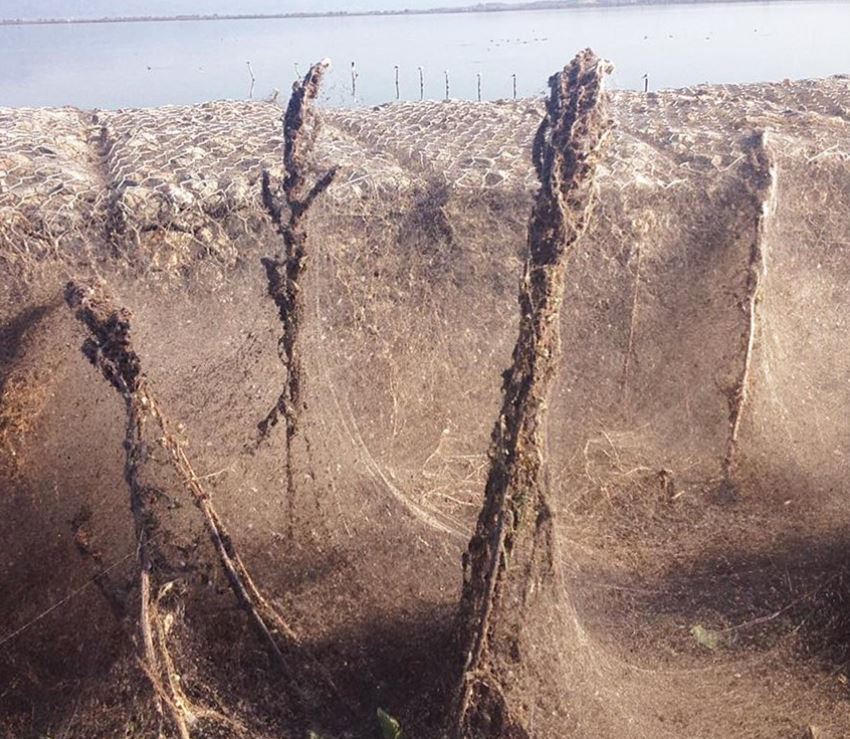 Ένα τεράστιο πέπλο ιστού αράχνης έχει απλωθεί για ένα και πλέον χιλιόμετρο και έχει σκεπάσει όλη την βλάστηση δίπλα από την ακτή. Τις απίστευτες σκηνές κατέγραψε με το κινητό του τηλέφωνο περαστικός από την περιοχή οδηγός.