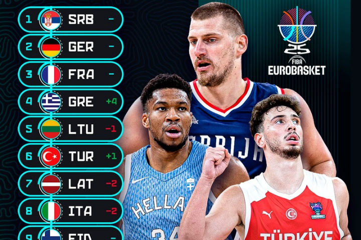 Εκτόξευση τεσσάρων θέσεων για την Εθνική Ελλάδας στα power rankings που δημοσίευσε η FIBA την Δευτέρα (25/08) και πλέον βρίσκεται στην τέταρτη θέση, λίγες ημέρες πριν από την έναρξη του EuroBasket 2025 (27/08-14/09).