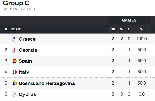 Η νίκη της Φούρια Ρόχα τη φέρνει στους τρεις βαθμούς του γ’ ομίλου, ισόβαθμη με τις Ιταλία και Γεωργία, με την κορυφή να ανήκει στην Ελλάδα ως τη μοναδική αήττητη ομάδα του γκρουπ.