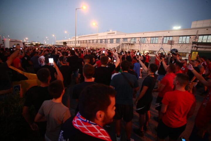 Ο Ντάνιελ Ποντένσε επιστρέφει σπίτι του και περίπου 1.500 φίλαθλοι των Πειραιωτών έβαψαν ερυθρόλευκο το αεροδρόμιο της Αθήνας προκειμένου να τον υποδεχθούν στο ταξίδι που ξεκίνησε από τη Σαουδική Αραβία.