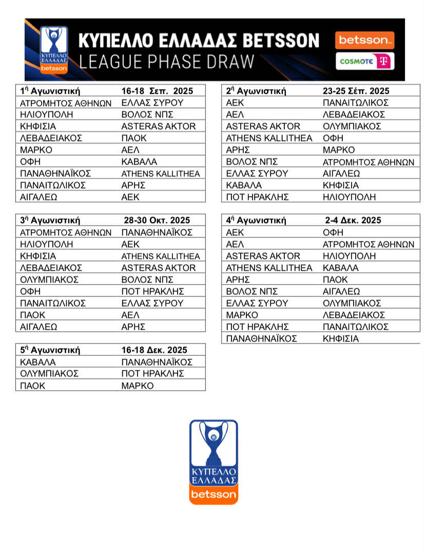 Το Κύπελλο Ελλάδας μπαίνει σε νέα εποχή με την εφαρμογή της League Phase στα πρότυπα των ευρωπαϊκών διοργανώσεων.