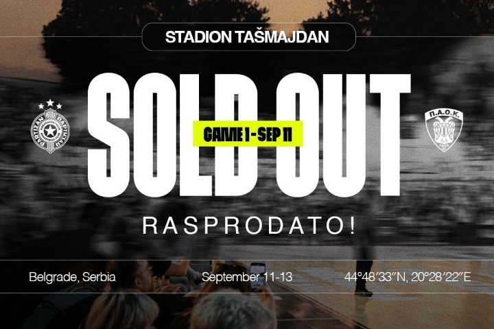 Τα εισιτήρια του μεγάλου φιλικού αγώνα που θα δώσουν η Παρτιζάν και ο ΠΑΟΚ στο Βελιγράδι, στο πλαίσιο του Open Air Tournament, εξαντλήθηκαν μέσα σε λιγότερες από 24 ώρες.