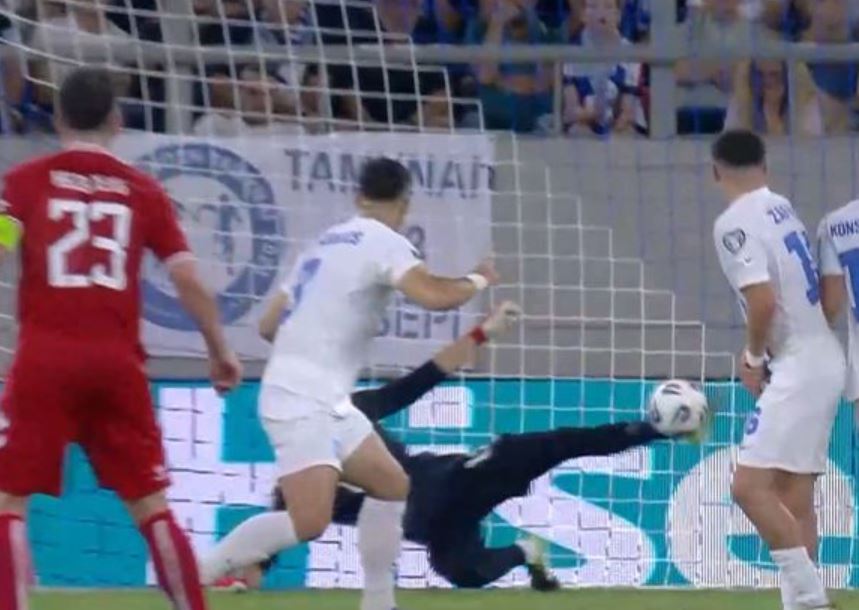 Ο τερματοφύλακας της εθνικής απομάκρυνε εντυπωσιακά με το πόδι την μπάλα σε μια απίθανη εκτέλεση φάουλ του Χόιμπιεργκ.