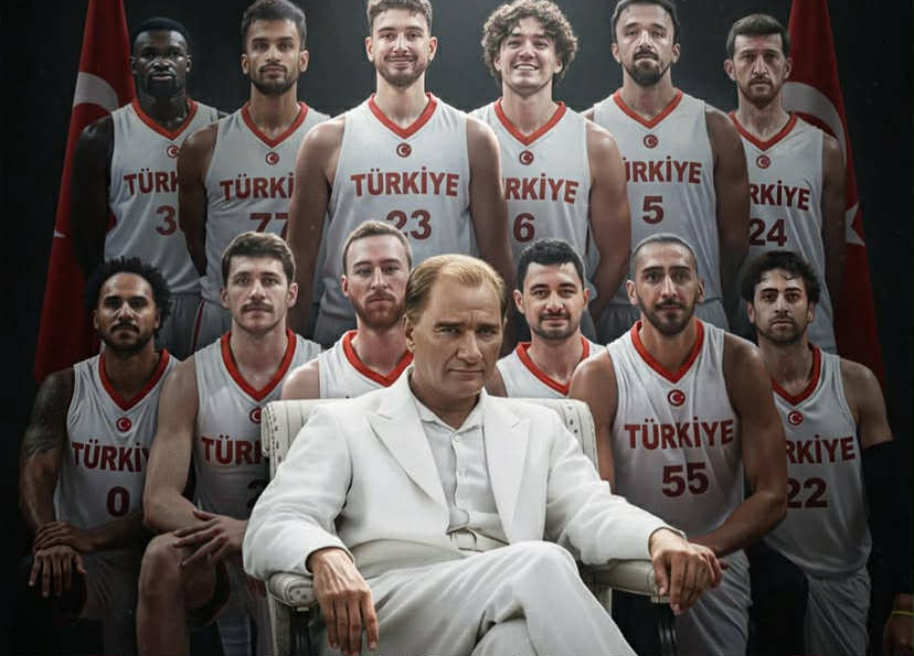 Ο Αλπερέν Σενγκούν μπορεί να μην βρέθηκε σε καλή μέρα εκτελεστικά αλλά μοίραζε το παιχνίδι και μάζευε όλα τα ριμπάουντ για την ομάδα του, ωστόσο μετά την ιστορική αυτή πρόκριση της ομάδας του επέλεξε να προκαλέσει μέσω social media με εξωαγωνιστικές αναφορές και φωτογραφία… AI με τον Κεμάλ Ατατούρκ και όλη την ομάδα της εθνικής Τουρκίας από πίσω του.