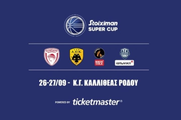 Για τους αγώνες που θα διεξαχθούν στο κλειστό της Καλλιθέας στη Ρόδο, την Παρασκευή 26/9 και το Σάββατο 27/9, με τη συμμετοχή του Ολυμπιακού, της ΑΕΚ, του Προμηθέα ΒΙΚΟΣ COLA και της Καρδίτσας ΙΑΠΩΝΙΚΗ στο πλαίσιο του Stoiximan Super Cup ενημερώνουμε τους φιλάθλους που θέλουν να τους παρακολουθήσουν από κοντά ότι: Εισιτήρια θα διατεθούν ΜΟΝΟ διαδικτυακά (ticketmaster).