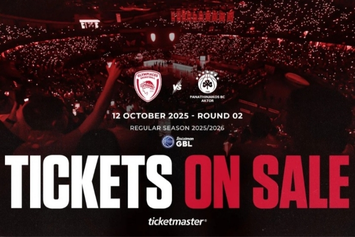 Αναλυτικά: «Η Κ.Α.Ε. ΟΛΥΜΠΙΑΚΟΣ θα ήθελε να ενημερώσει τους φιλάθλους της ότι τα εισιτήρια για τον αγώνα της STOIXIMAN GBL με τον ΠΑΝΑΘΗΝΑΪΚΟ AKTOR που θα διεξαχθεί την Κυριακή 12/10/2025 με ώρα έναρξης 19:00 θα είναι διαθέσιμα προς πώληση από την Δευτέρα 29/09/2025 και ώρα 14:00, μέσω του www.olympiacosbc.gr, μέσω του www.ticketmaster.gr, είτε μέσω του τηλεφωνικού κέντρου, στο τηλέφωνο 2111996007.