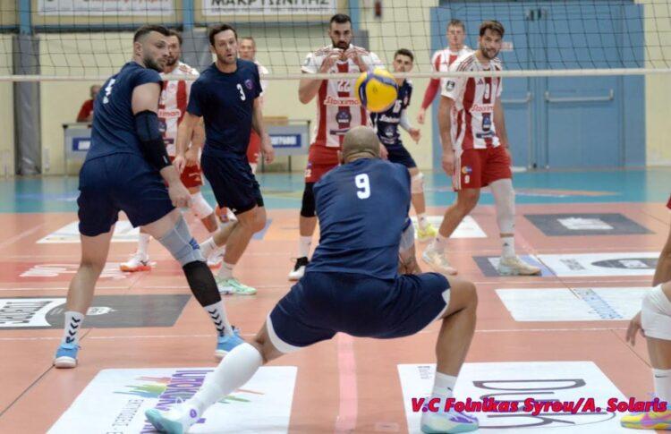 ΦΟΙΝΙΚΑΣ ΣΥΡΟΥ (Θάνος Τερζής): Νεβό, Μικελούτσι 11 (7/16 επ., 1 άσος, 3 μπλοκ), Αναγνώστου 12 (5/9 επ., 2 άσοι, 5 μπλοκ), Τρούχτσεφ 17 (14/36 επ., 3 άσοι, 64% υπ. – 46% άριστες), Κωστόπουλος 14 (13/31 επ., 1 άσος, 64% υπ. – 33% άριστες), Βαν Ντεν Ντρις 18 (17/45 επ., 1 μπλοκ) / Μπουράκης (λ., 48% υπ. – 30% άριστες), Ρουσσόπουλος