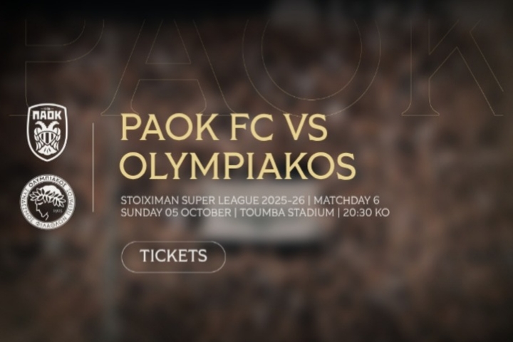 Αναλυτικά: «Η ΠΑΕ ΠΑΟΚ ανακοινώνει ότι την Τετάρτη (01.10) στις 11:00 θα ξεκινήσει η ηλεκτρονική διάθεση των εισιτηρίων του αγώνα ΠΑΟΚ–Ολυμπιακός, για την 6η αγωνιστική του Πρωταθλήματος της Stoiximan Super League 2025-26, που θα διεξαχθεί την Κυριακή (05.10) στις 20:30 στο γήπεδο της Τούμπας».