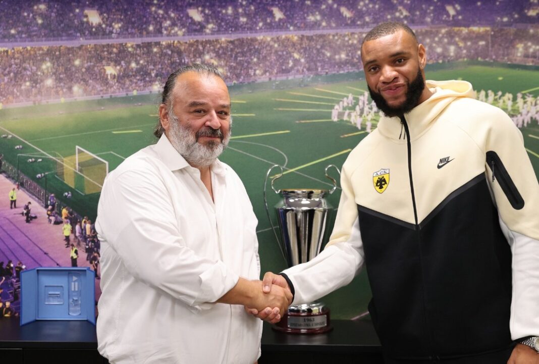 Μαζί συνεχίζουν ΑΕΚ και Αρόλντ Μουκουντί. Παρουσία Μάριου Ηλιόπουλου ο Καμερουνέζος σέντερ μπακ υπέγραψε νέο συμβόλαιο μέχρι το 2029 και θα συνεχίσει να ηγείται της κιτρινόμαυρης άμυνας.