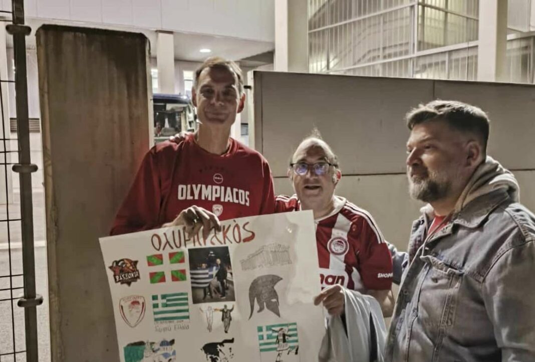 Ο Χοσέ Παλάθιος Ντίεθ είναι Βάσκος που μένει σε μια περιοχή 47 χιλιόμετρα μακριά από τη Βιτόρια. Ο Ισπανός είναι μεγάλος λάτρης του Ολυμπιακού και φρόντισε να εκφράσει την αγάπη του στον αγώνα με την Μπασκόνια, παραδίδοντας ένα πολύ όμορφο δώρο στον Γιώργο Μπαρτζώκα, ενώ έβγαλε και τις απαραίτητες αναμνηστικές φωτογραφίες.