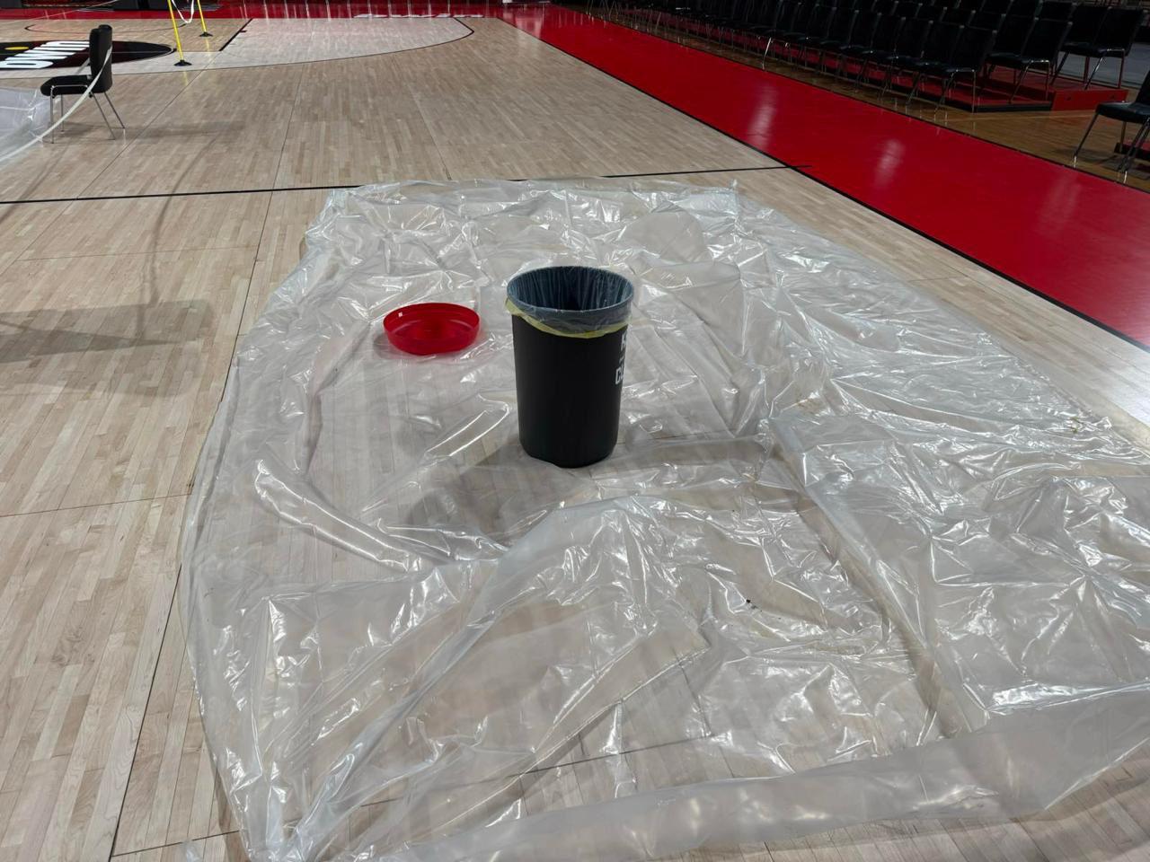 Τελευταίο συμβάν που επιβεβαιώνει την κακή κατάσταση της έδρας του Ολυμπιακού είναι το γεγονός ότι πλημμύρισε από την έντονη βροχόπτωση που υπάρχει τις τελευταίες ημέρες και γίνονται προσπάθειες για να σωθεί το παρκέ.