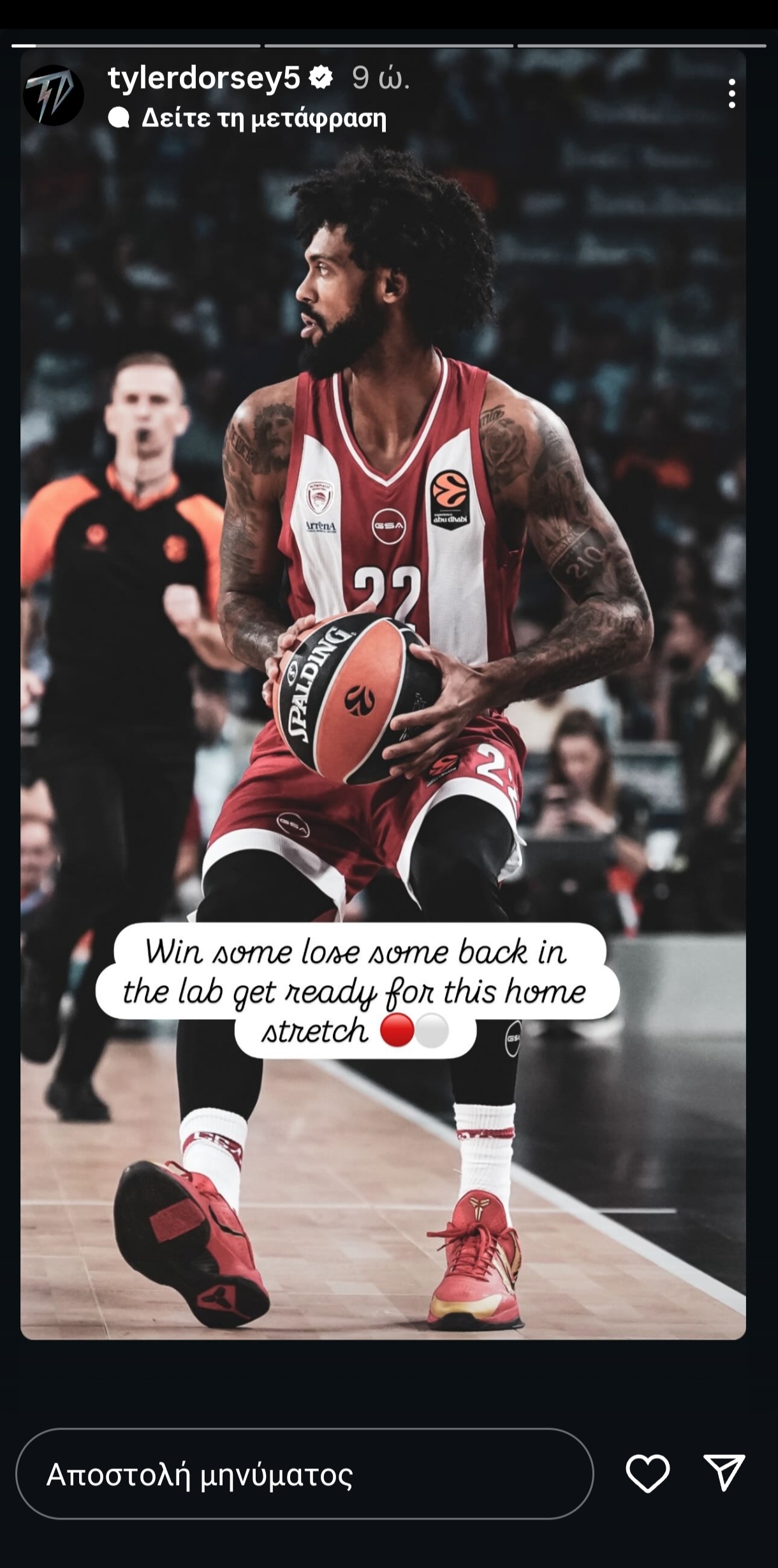 Μάλιστα, δε δίστασε να στείλει ένα μήνυμα συσπείρωσης στον επίσημο λογαριασμό του στο Instagram, λίγες ώρες μετά την ήττα από τους Ισπανούς, γράφοντας τα εξής: «Κάποια ματς τα κερδίζεις, άλλα τα χάνεις. Επιστρέφουμε για δουλειά, ώστε να είμαστε έτοιμοι για αυτό το σερί εντός έδρας».