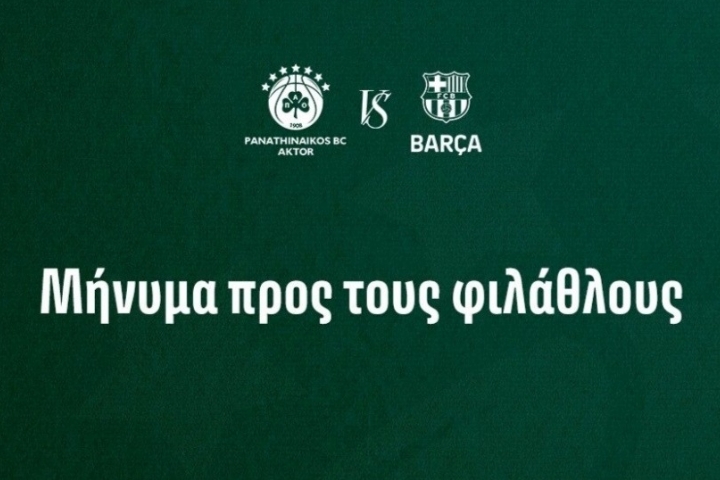 Η ΚΑΕ Παναθηναϊκός εξέδωσε μια ανακοίνωση με την οποία θέλησε να ενημερώσει τους φιλάθλους του σχετικά με ορισμένες οδηγίες που οφείλουν να ακολουθήσουν κατά τη διάρκεια της σημαντικής αναμέτρησης με την Μπαρτσελόνα στο κατάμεστο «Telekom Center Athens» το βράδυ της Παρασκευής 3 Οκτωβρίου και ώρα 21:15 στο πλαίσιο της δεύτερης αγωνιστικής της EuroLeague.