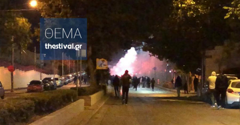 Λίγο μετά τις 10 το βράδυ περίπου 100 κιτρινόμαυροι οπαδοί επιβιβάστηκαν σε λεωφορείο του ΟΑΣΘ και ζήτησαν από τον οδηγό να τους μεταφέρει στο Αλεξάνδρειο Μέλαθρο. Από εκεί παρέλαβαν τα «πολεμοφόδια» τους και κινήθηκαν προς το εσωτερικό του ακαδημαϊκού ιδρύματος. Οι κρανοφόροι νεαροί με τα ρόπαλα στα χέρια, εγκαταστάθηκαν μπροστά στην βιβλιοθήκη του ΑΠΘ και περίμεναν τον «εχθρό».