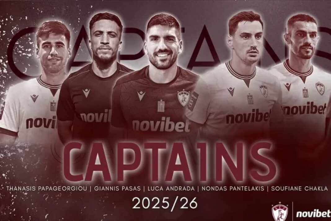Εκ μέρους του ποδοσφαιρικού τμήματος οι Αρχηγοί, Θανάσης Παπαγεωργίου – Γιάννης Πασάς – Λούκα Αντράντα – Νώντας Παντελάκης – Σοφιάν Τσάκλα».