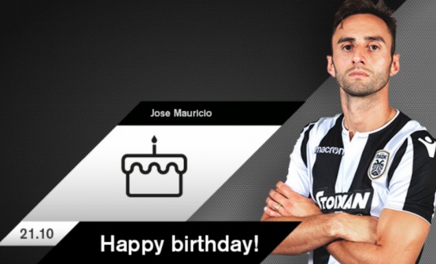 Η οικογένεια της ΠΑΕ ΠΑΟΚ εύχεται στον ποδοσφαιριστή της, Χοσέ Μαουρίσιο, ο οποίος κλείνει σήμερα τα 30, χρόνια πολλά με υγεία, ευτυχία και πολλές επιτυχίες σε όλους τους τομείς.