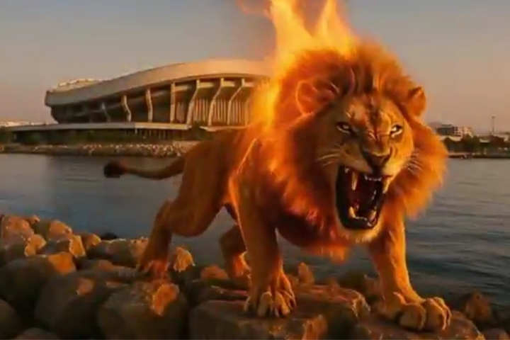 Πιο συγκεκριμένα, στην εξαιρετική δημιουργία των Πειραιωτών, φαίνεται ένα λιοντάρι να περιμένει τους δύο αντιπάλους στην αρένα του φαληρικού γηπέδου και το σύνθημα δεν είναι άλλο από το πολλά υποσχόμενο: «ΣΕΦ mode: On Fire».