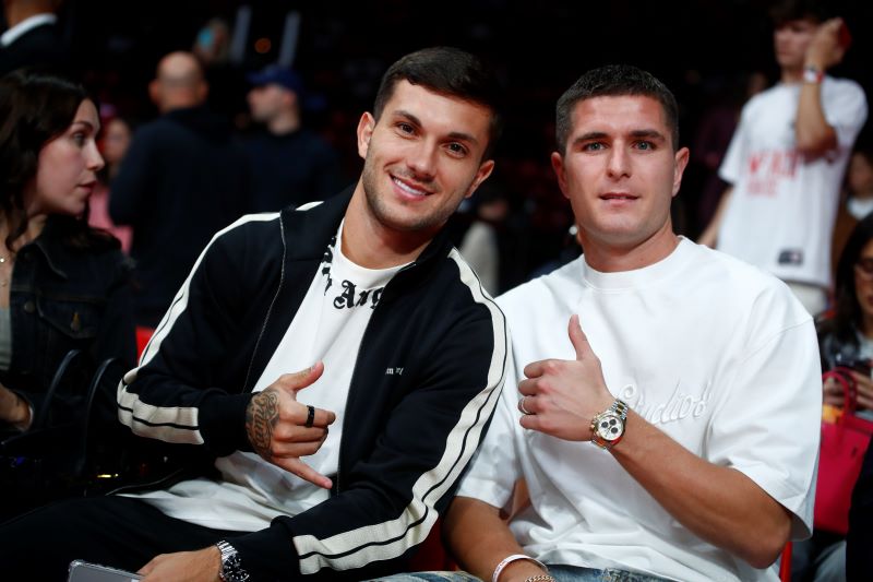 Οι ποδοσφαιριστές του Ολυμπιακού Γκαμπριέλ Στρεφέτσα και Λορέντσο Πιρόλα εκμεταλλεύτηκαν τη διακοπή των εθνικών ομάδων για να δουν το ντέρμπι διά ζώσης, ενώ Χριστίνα Σιούτη και Στεφανία Σάντα την επομένη της ευρείας νίκη της ομάδας πόλο Γυναικών στον Άλιμο, βρέθηκαν στο μπασκετικό γήπεδο και πόζαραν με χαμόγελο στον φωτογραφικό φακό.