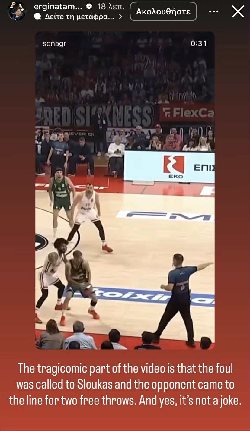 Μπορεί ο Εργκίν Αταμάν να μην εξέφρασε μέσω δηλώσεων στην τηλεόραση ή στη συνέντευξη Τύπου τα παράπονά του για τη διαιτησία στο πρώτο αιώνιο ντέρμπι της σεζόν στο ΣΕΦ, ωστόσο δεν παρέλειψε να το κάνει μέσω instagram stories στον… δρόμο που χάραξε ο Δημήτρης Γιαννακόπουλος.