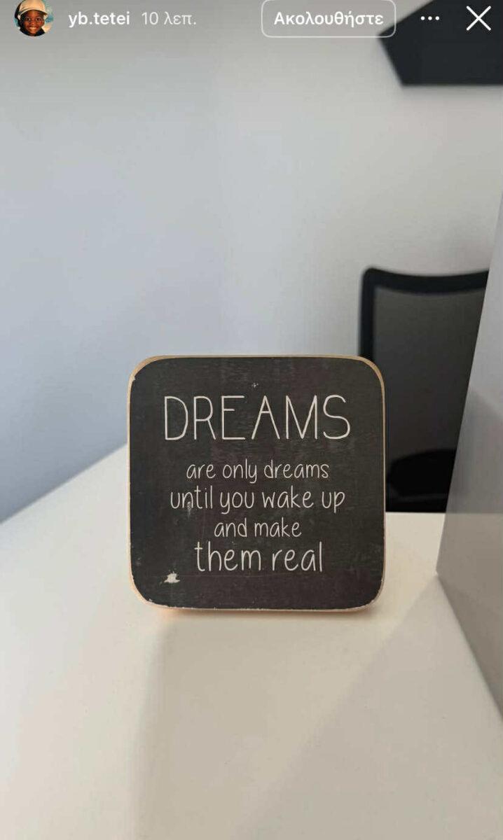 Συγκεκριμένα ανέβασε ένα instagram story με τη φράση: «Τα όνειρα είναι απλά όνειρα μέχρι να ξυπνήσεις και να τα κάνεις αληθινά».