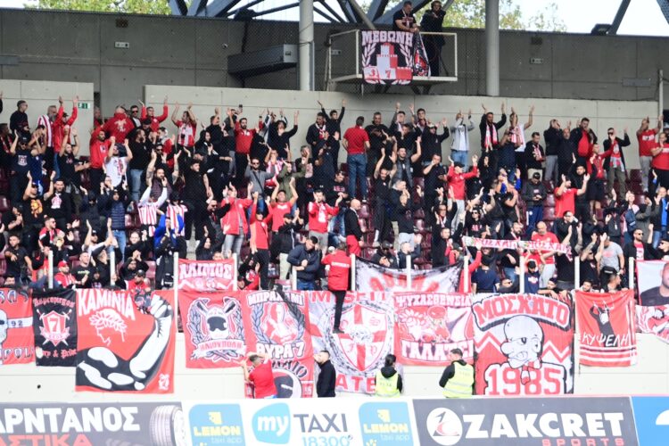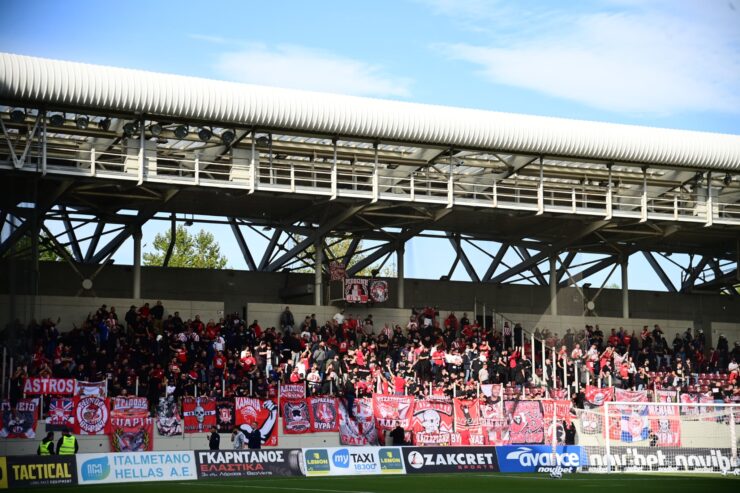 Οι οπαδοί του Ολυμπιακού έδωσαν δυναμικό «παρών» στο AEL FC Arena για την εκτός έδρας αναμέτρηση με την ΑΕΛ.