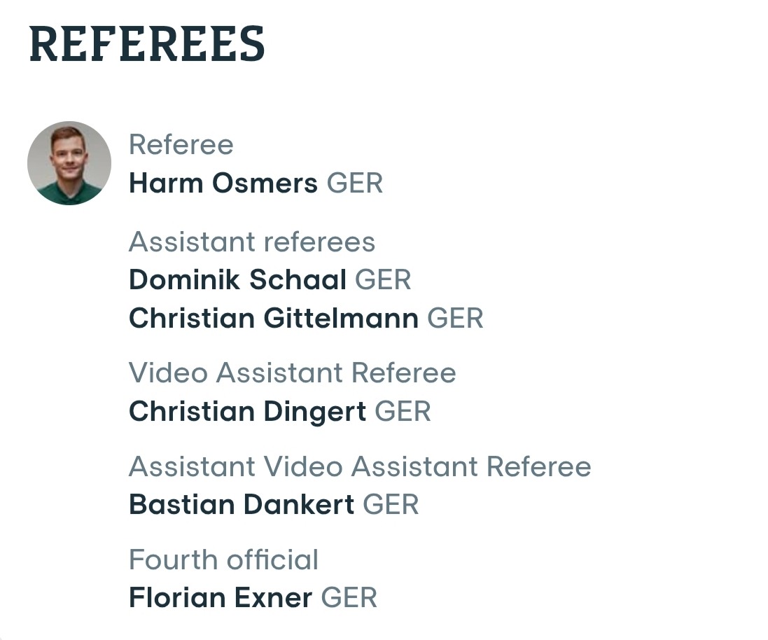 Η UEFA γνωστοποίησε τους διαιτητές που θα σφυρίξουν την αναμέτρηση του Παναθηναϊκού απέναντι στη Φέγενορντ στην Ολλανδία (23/10, 19:45) στο πλαίσιο της τρίτης αγωνιστικής της League Phase του Europa League. Αυτοί δεν είναι άλλοι από τον Γερμανό Χαρμ Όσμερς, τους βοηθούς του Ντόμινικ Σχααλ και Κριστιάν Γκίτερμαν, ενώ τέταρτος θα είναι ο Φλοριάν Έξνερ και στο VAR οι Κριστιάν Ντίνγκερ και Μπαστιάν Ντάνκερτ. Ο 40χρονος είναι ρέφερι πρώτης κατηγορίας και στο παρελθόν έχει σφυρίξει τα εξής ματς με ελληνικό ενδιαφέρον: Ελλάδα – Κύπρος 2-1 (φιλικό, 11/11/2020), ΠΑΟΚ – Παναθηναϊκός 2-1 (Super League, 27/04/2025), Ολυμπιακός – ΠΑΟΚ 4-2 (Super League, 04/05/2025), ΠΑΟΚ – Ολυμπιακός 2-1 (Super League, 05/10/2025).