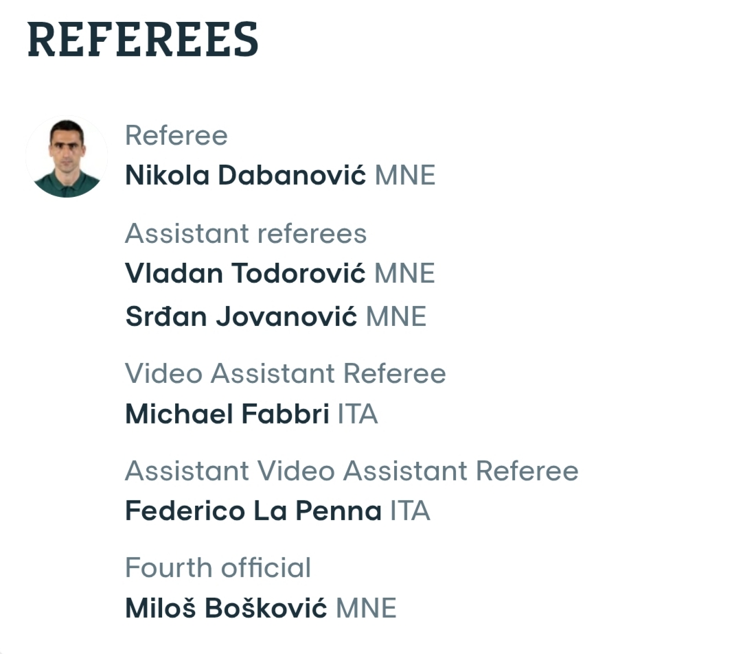 Το παιχνίδι του ΠΑΟΚ κόντρα στη Λιλ στη Γαλλία (23/10, 22:00) για την τρίτη στροφή της League Phase της δεύτερης τη τάξει κορυφαίας ευρωπαϊκής διασυλλογικής ποδοσφαιρικής διοργάνωσης θα διευθύνει ο Μαυροβούνιος Νίκολα Νταμπάνοβιτς με βοηθούς τους Βλάνταν Τοντόροβιτς, Σρνταν Γιοβάνοβιτς και τέταρτο τον Μίλος Μπόσκοβιτς, τη στιγμή που στο VAR θα βρίσκονται οι Ιταλοί Μίκαελ Φάμπρι και Φεντερίκο Λα Πένα. Ο 43χρονος άρχοντας του παιχνιδιού θεωρείται πρώτης κατηγορίας της UEFA και έχει ελληνική εμπειρία από τις παρακάτω μάχες: Βοσνία Ερζεγοβίνη – Ελλάδα 0-0 (φιλικό, 10/08/2011), ΑΕΚ – Ολυμπιακός 3-0 (Κύπελλο Ελλάδας, 09/02/2023), ΑΕΚ – Παναθηναϊκός 0-0 (Super League, 19/03/2023), Παναθηναϊκός – ΑΕΚ 1-1 (Super League, 13/03/2022), Παναθηναϊκός – Ολυμπιακός 1-0 (Super League, 17/04/2022), Ολυμπιακός – ΑΕΚ 2-0 (Super League, 25/04/2021), ΠΑΟΚ – ΑΕΚ 3-1 (Super League, 21/03/2021).