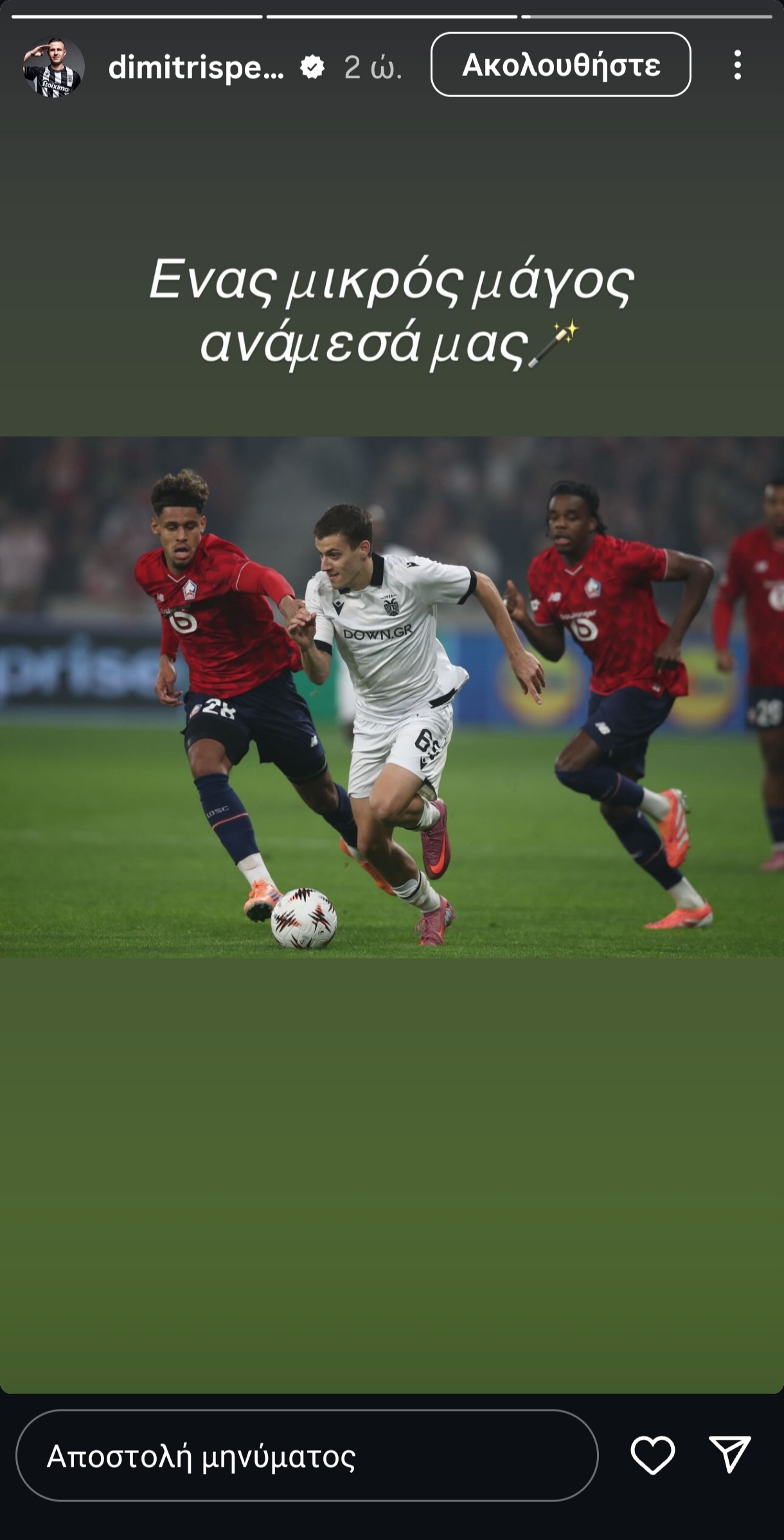 Μάλιστα, ανάμεσα σε όσους ενθουσιάστηκαν με τα κατορθώματα του ταλαντούχου 22χρονου διεθνή Έλληνα επιθετικού μέσου ήταν και ο συμπαίκτης του στον Δικέφαλο του Βορρά, ο Δημήτρης Πέλκας, ο οποίος ανάρτησε μια φωτογραφία του στο Instagram γράφοντας: «Ένας μικρός μάγος ανάμεσα μας».