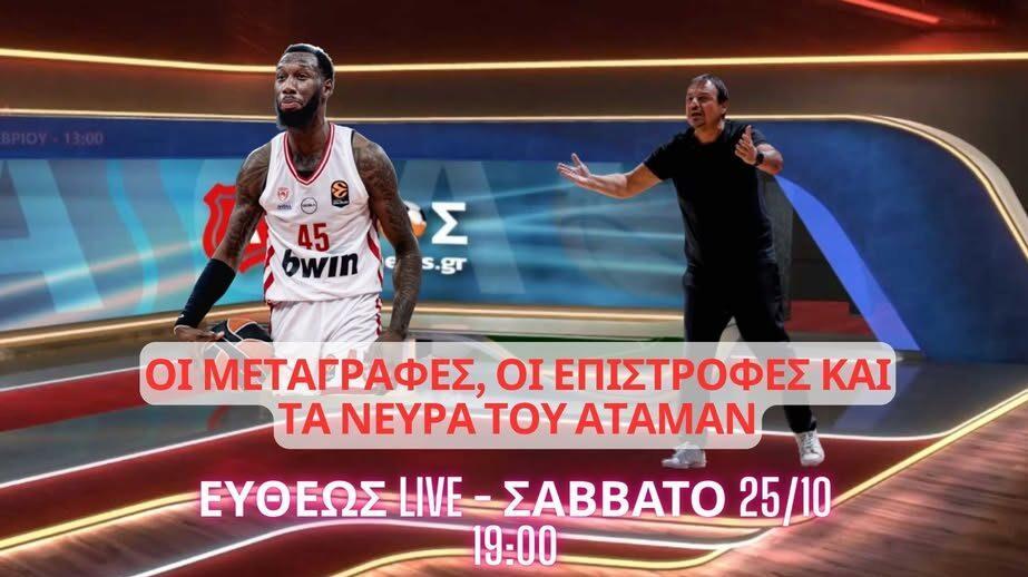 Δείτε το ΕΥΘΕΩΣ Live του Σαββάτου 25/10 με τον Γιώργο Χαλά και τον Ανδρέα Καταχανά στο ΑΘΛΟΣ TV.