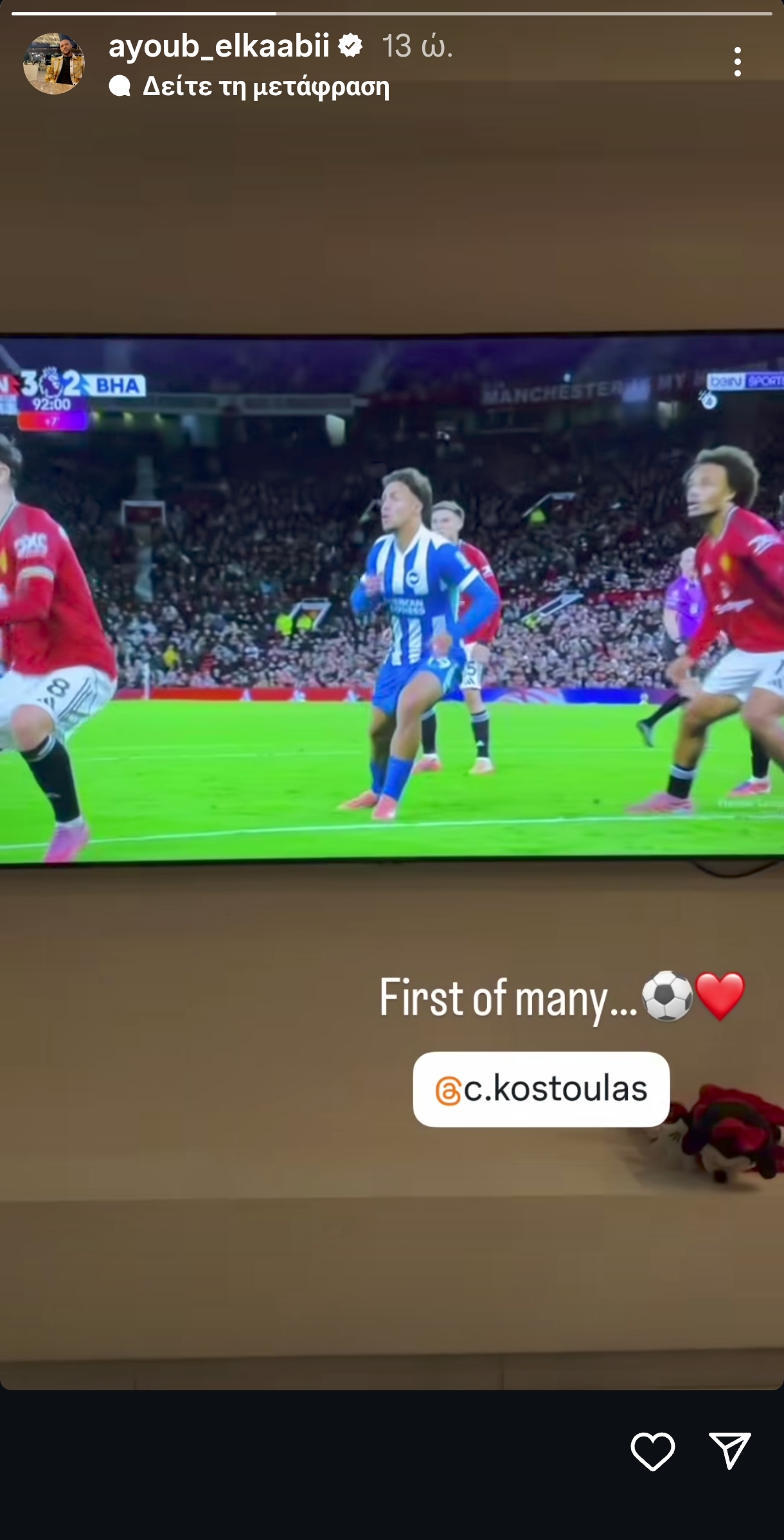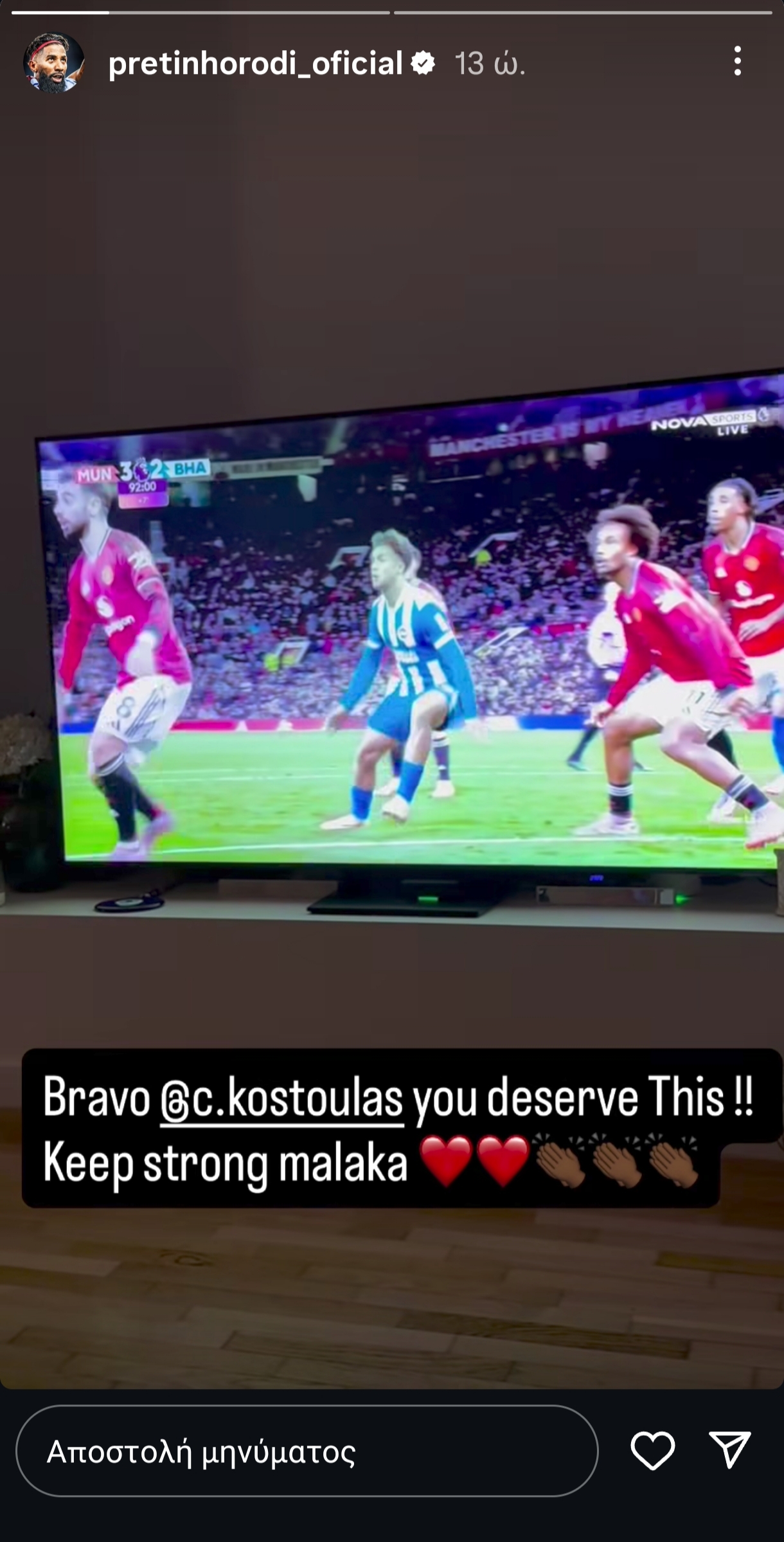 Πιο συγκεκριμένα, ο 33χρονος Βραζιλιάνος δεξιός μπακ των Πειραιωτών τον συνεχάρη σε story που ανάρτησε στο Instagram του, με τα εξής λόγια: «Μπράβο Κωστούλα, το αξίζεις αυτό!! Κράτα γερά μ@λ@κ@», ενώ ο 32χρονος διεθνής Μαροκινός σέντερ φορ έγραψε: «Το πρώτο από τα πολλά…».